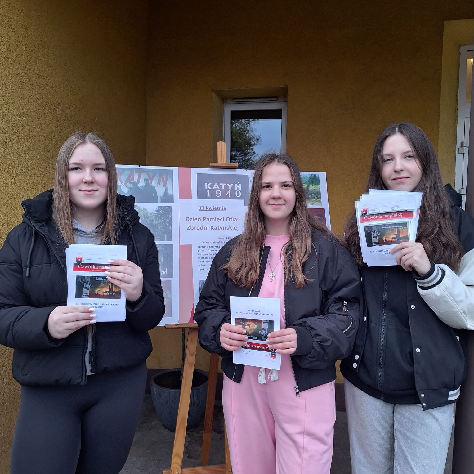 Tego dnia, jeszcze przed rozpoczęciem lekcji, uczniowie rozdawali społeczności szkolnej specjalnie przygotowaną gazetkę w formie kartki z kalendarza, zawierającej najważniejsze informacje związane ze Zbrodnią Katyńską oraz historią jej ujawnienia. Materiały te trafiły nie tylko do uczniów, ale również do nauczycieli oraz rodziców, dzięki czemu pamięć o tym wydarzeniu mogła zostać szerzej upowszechniona. Gazetka została przygotowana we współpracy szkolnego koła dziennikarskiego z uczniami interesującymi się historią.